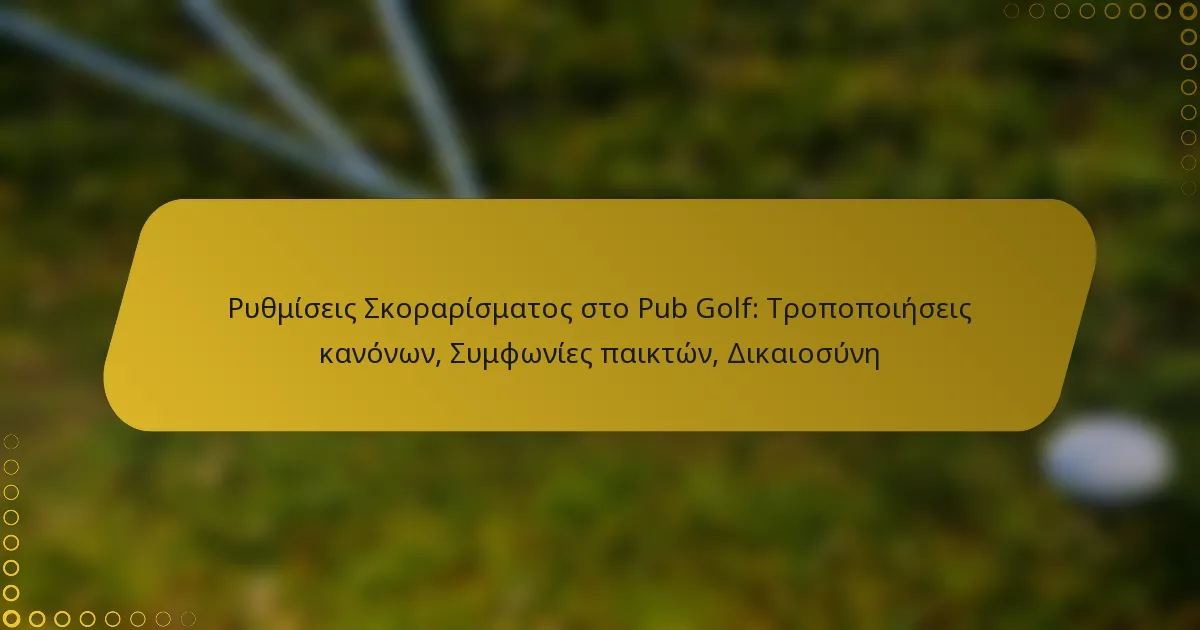 Οι προσαρμογές βαθμολόγησης στο pub golf είναι απαραίτητες τροποποιήσεις στους τυπικούς κανόνες που ενισχύουν την εμπειρία του παιχνιδιού και καλύπτουν τις προτιμήσεις των παικτών. Με την αλλαγή του συστήματος βαθμολόγησης ή την εφαρμογή ειδικών κανόνων, οι παίκτες μπορούν να δημιουργήσουν μια πιο ευχάριστη ατμόσφαιρα, διασφαλίζοντας παράλληλα τη δικαιοσύνη μέσω σαφών συμφωνιών σχετικά με τη βαθμολόγηση. Αυτές οι συμφωνίες βοηθούν όλους τους συμμετέχοντες να κατανοήσουν τις τροποποιήσεις, ενισχύοντας το πνεύμα της φιλίας και του ανταγωνισμού.